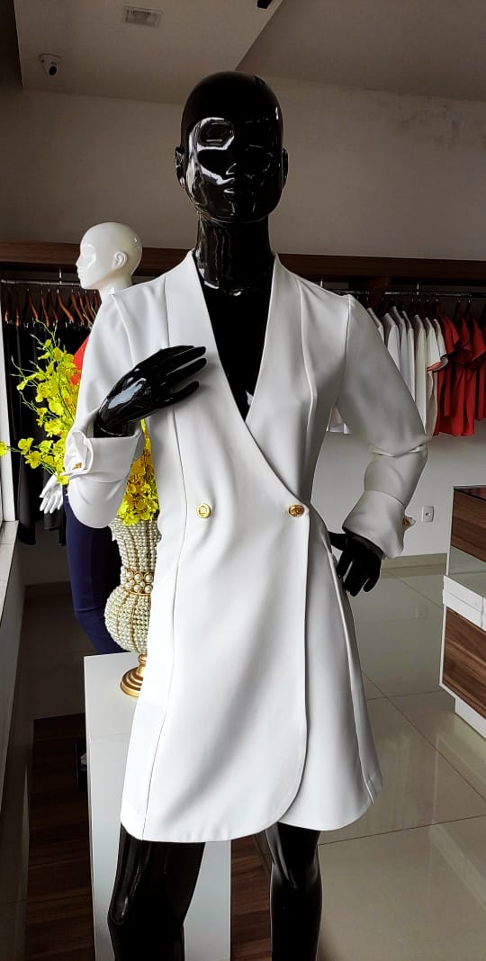 O jaleco Cintia tem uma modelagem sofisticada, com botões dourados, gola transpassada e punho diferenciado. O modelo é confeccionado em tecido profissional, ideal para uniformes, já que garante uma alta durabilidade e qualidade.