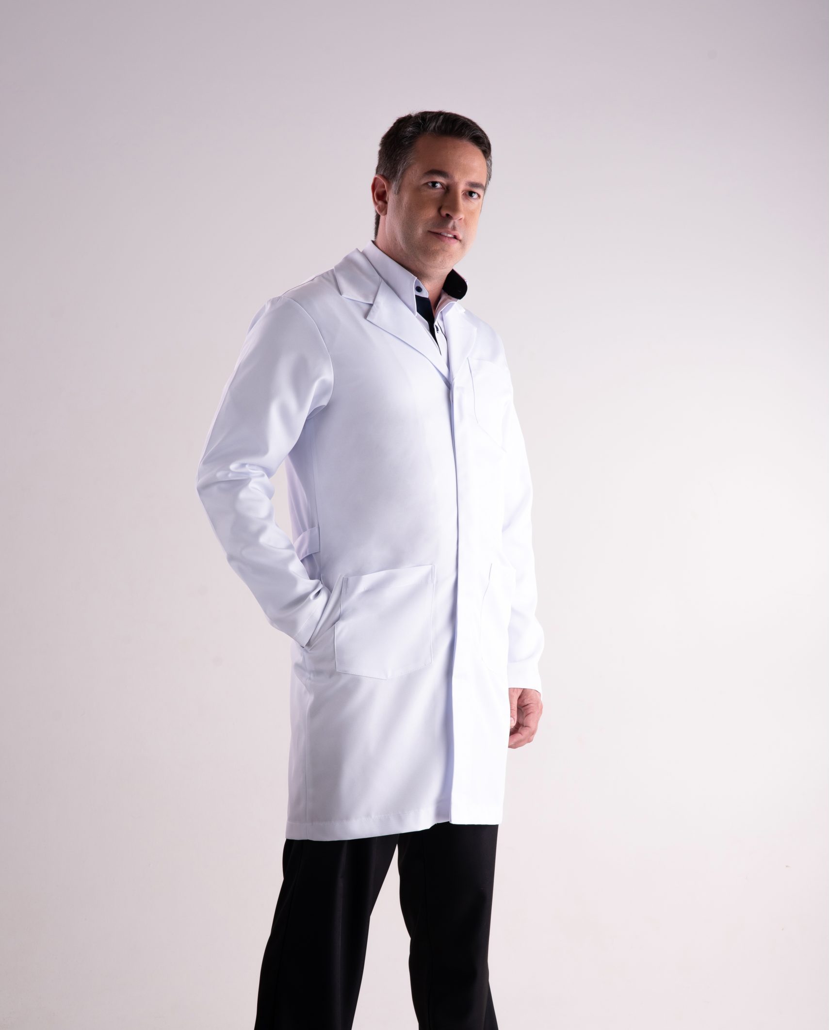 O jaleco masculino tradicional é uma peça moderna e funcional! Conta abotoamento embutido, o que confere um ar de muita elegância. O modelo é confeccionado em tecido profissional ideal para uniformes, já que garante uma alta durabilidade e qualidade.